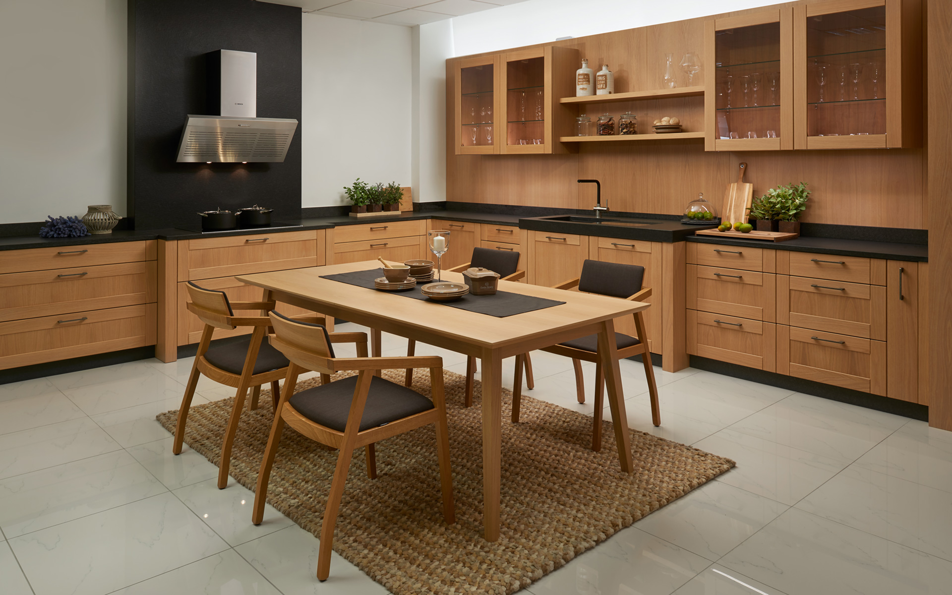 Dokonalá souhra s klasickým typem kuchyně. Luxusní zásuvkové vložky z masivního dřeva můžete mít ve světlé nebo tmavé variantě.